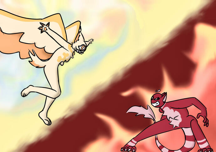 Horns and Halos is a webcomic/ask blog run by @switchthedragon (same username everywhere)